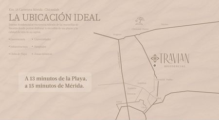 TRAVIAN RESIDENCIAL es un desarrollo de 277 lotes residenciales totalmente urbanizados ubicado a pie de carretera en el kilometro 14 de carretera Mérida - Chicxulub Puerto.