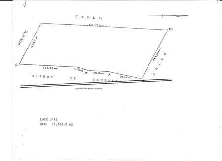 • Predio con dos frentes: uno de 137 m a solo 500 metros de la autopista México–Pachuca libre, y otro de 337 m
