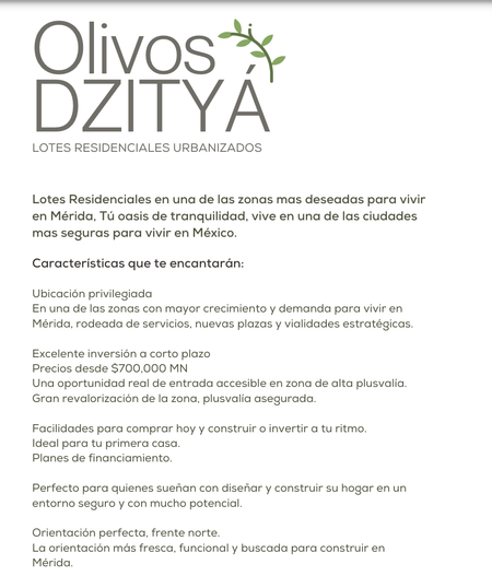 Lotes Residenciales en una de las zonas mas deseadas para vivir en Mérida, DZITYÁ.