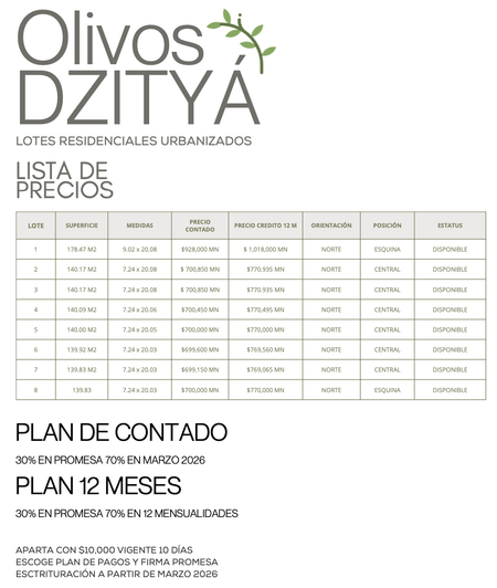 TERRENO VENTA MÉRIDA, ESQUINA, 178M2, ZONA NORTE, FINANCIAMIENTO, OLIVOS DZITYÁ.