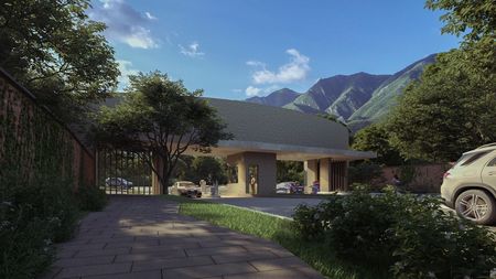 Terrenos Residenciales en Venta cerca del Yerbaniz en la Carretera Nacional; el cual el acceso principal del complejo se integra a base de un marco radial, compuesto por un muro doble que permite el control del acceso y salida al fraccionamiento.