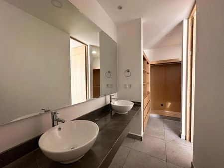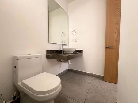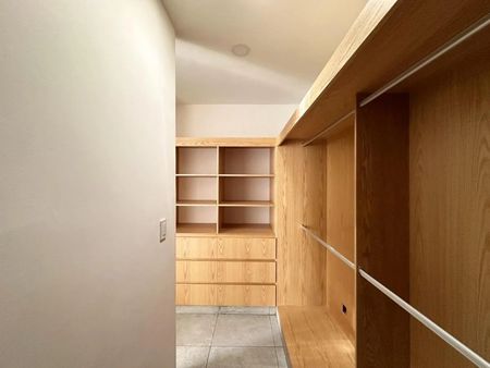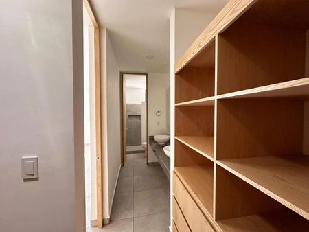 Recámara secundaria (3.70m de altura) con área de closet y baño completo.