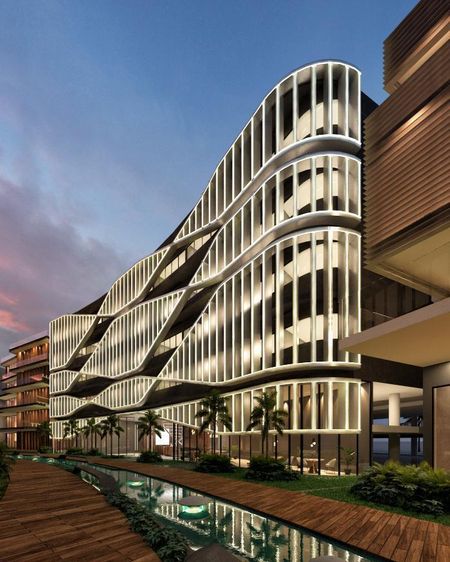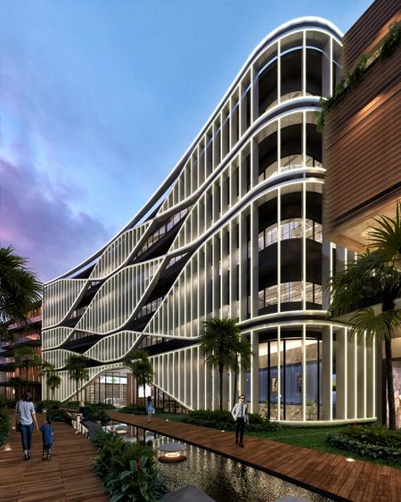 LuximiaMed no será una torre médica tradicional. Diseñada por el reconocido arquitecto Enrique Manero —creador de la icónica Shark Tower—, esta edificación de cinco niveles presenta una fachada única que evoca la estructura de la cadena del ADN, símbolo de vida, innovación y salud. Todo esto enmarcado por un entorno verde y natural que integra jardines, un lago en forma de mantarraya, fuentes danzantes, terraza panorámica y vista al mar.