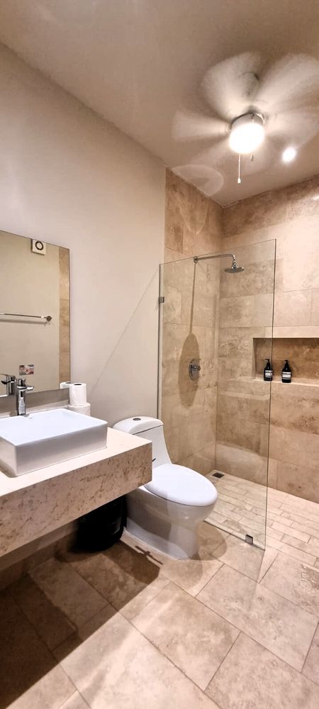 Recámara principal con mobiliario completo y jacuzzi privado al aire libre para noches bajo las estrellas
