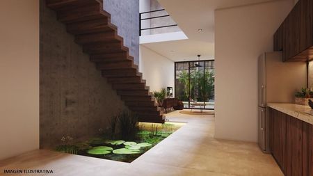 Acceso a la sala con jardín acuático, entrada directa al área común