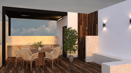• Jardín Rooftop (Piscina, área de estar, medio baño y área de regadera)