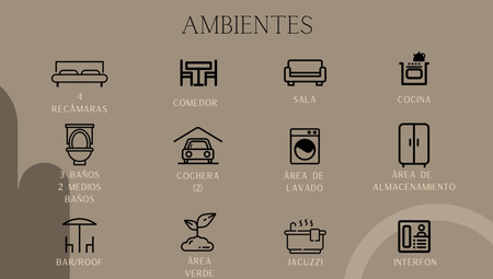 *Las imágenes mostradas son con fines ilustrativos, puede haber cambios en la propiedad, de manera que solo sirven como referencia y pueden variar, así como los muebles y equipamiento son únicamente representativos para ambientar los espacios y no están incluidos.