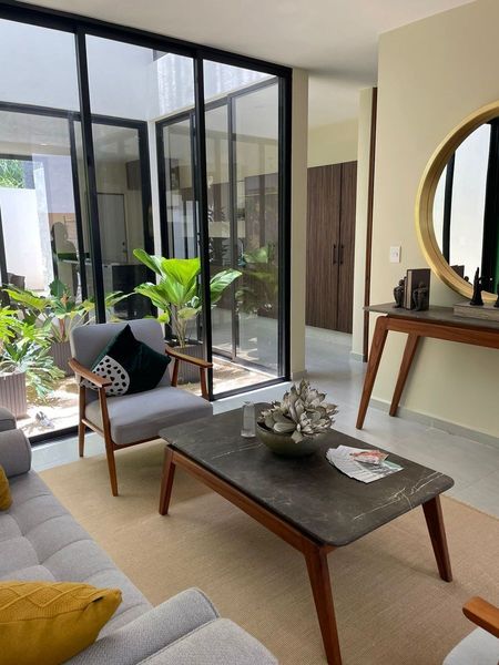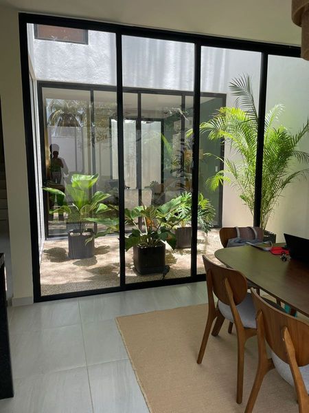 Epacio para dos autos, Sala, baño de visitas, área para home office, jardin interior, comedor, cocina, área de lavado y bodega, jardín trasero