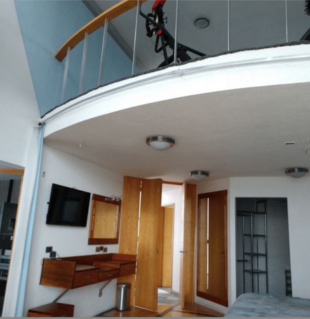 La construcción esta diseñada para eliminar fácilmente los muros y cambiar distribuciones, tinaco de 2,500 litros, ventanería con cristales dobles, térmica y aislante de ruido.