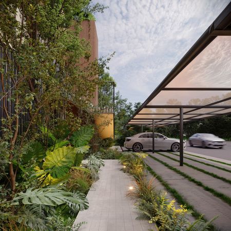 Sus árboles y su calidez distinguen a este desarrollo con una arquitectura que logra una perfecta armonía con la zona, haciendo que los que vivan ahí sientan una paz y comodidad constante no solo por su diseño sino por su excelente ubicación.