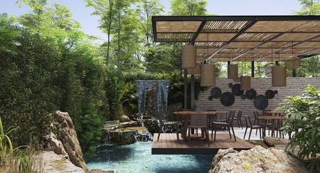 Cenote lounge con cascada.