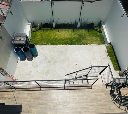 La planta de abajo cuenta con una recámara , estancia, un baño completo y excelente jardín trasero con preparación para poner asador.