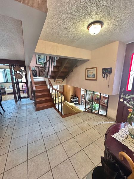 Su puerta principal en tablero, hada y emplomada, nos conducen a un vestíbulo espacioso. Queda entrada a una sala generosa con ambiente de bar a medio nivel, un comedor holgado y flexible. Que se abre a una sala de estar familiar con salida a un patio encantador con un clóset exterior para guardar todo lo que se necesita exteriormente o para mantenimiento.