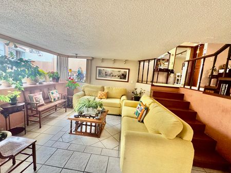Lo invitamos a conocer esta bella residencia de diseño californiano contemporáneo, la cual cuenta con dos estacionamientos independientes, un precioso jardín frontal. Con techos de 2 aguas
