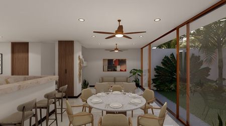 Complejo de villas de 3 habitaciones que se encuentra en Chuburná Puerto, un sitio reconocido por sus diversas playas vírgenes, libres de la alta demanda turística, lo cual lo convierte en un lugar ideal para descansar.