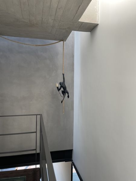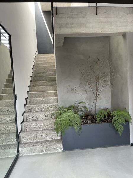 Gran área social donde está cocina abierta con sala y comedor, bar y salida al jardín con un espejo de agua y área federal