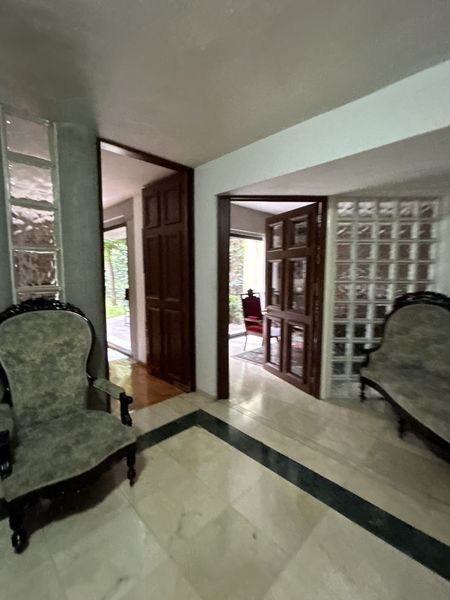 hall ,baño de visitas , sala , comedor , cocina , desayunador . alacena, área de bar , despacho , terraza , cava , cubo de escalera , amplio jardín ,cochera cubierta para cuatro automóviles , bodega . cuarto de servicio con baño, área de lavado, área de tendido .