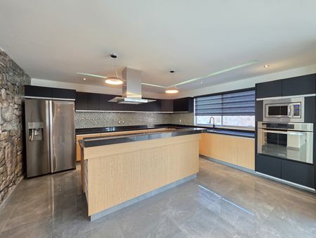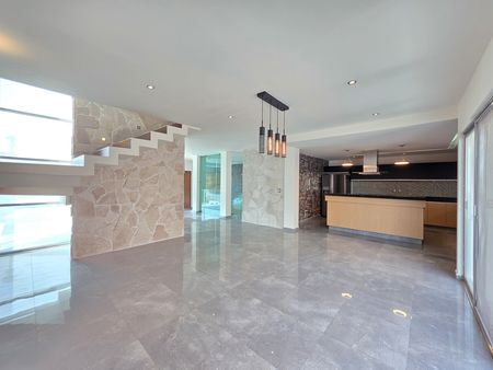 En la planta baja, la casa cuenta con 4 estacionamientos techados y un versátil sótano con baño completo, ideal para adaptarse como una quinta recámara o como un espacio flexible según tus necesidades. La sala a doble altura se integra fluidamente con un espacioso comedor y una moderna cocina equipada con isla central, torre de hornos, barra desayunadora y una práctica alacena. Un baño de visitas, área de lavado y amplios espacios de almacenaje complementan este nivel, que se abre hacia un jardín seco posterior, conectado también con el sótano.