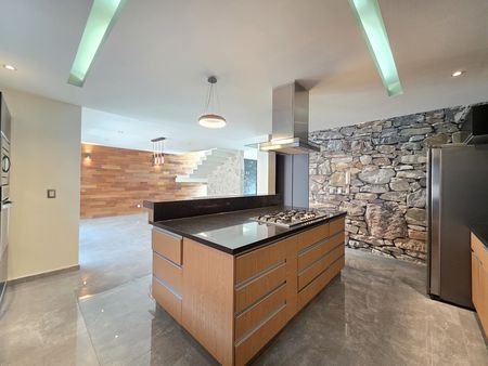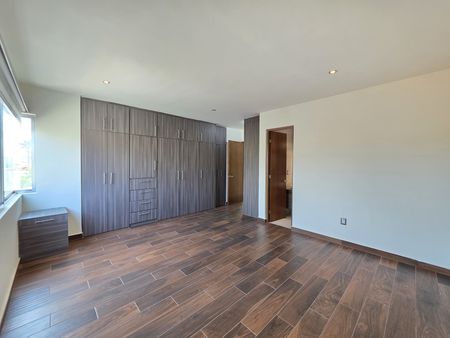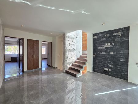 Esta residencia se distingue por sus acabados modernos en laja, madera y cristal, con iluminación cálida que crea ambientes acogedores. Incluye persianas automatizadas y chapa electrónica para tu comodidad y seguridad. Al ubicarse en esquina, ofrece privacidad adicional y se beneficia de un estacionamiento de visitas frontal. Cuenta también con interphone.