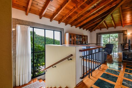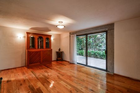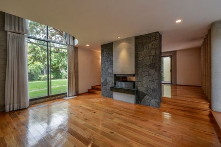 Cuenta con sala con chimenea y comedor muy amplios con salida al jardín; área de bar, medio baño, cocina equipada y ante comedor.