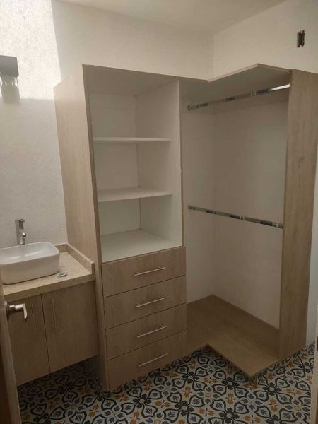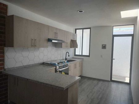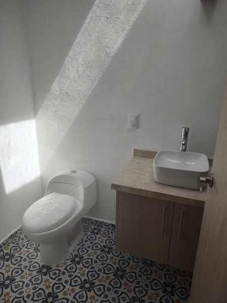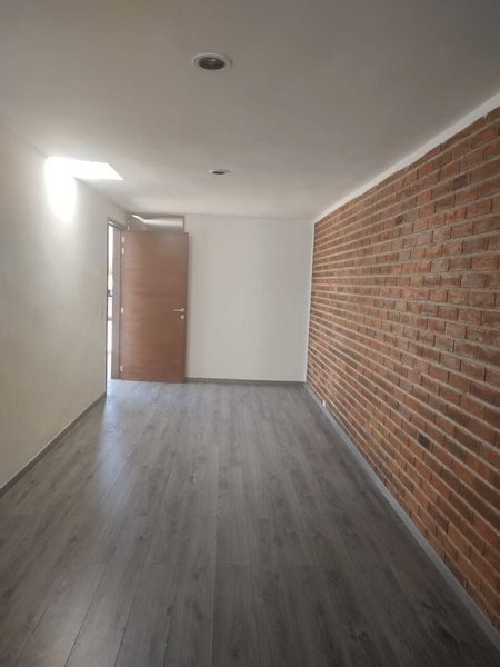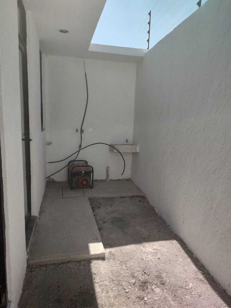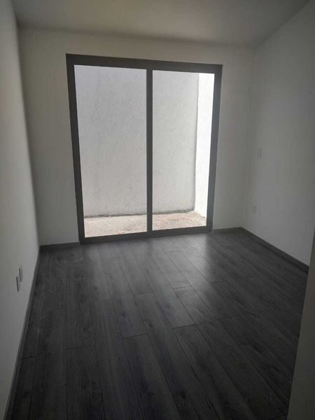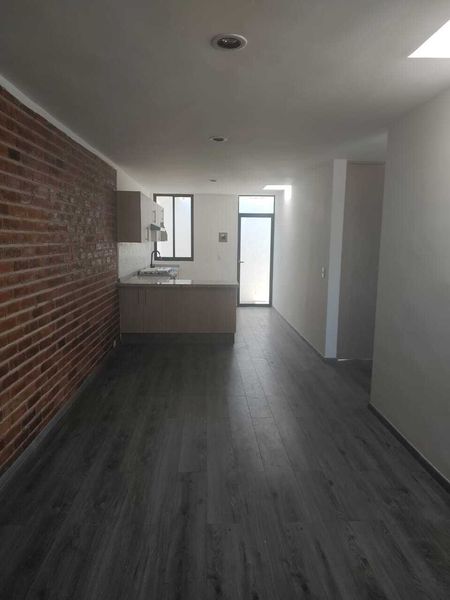 Dos recámaras con baño completo, estudio, cocina, sala comedor, estacionamiento, área de lavado techada, pequeño jardín