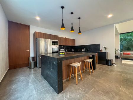 Cocina equipada con isla y meseta de granito, concepto abierto