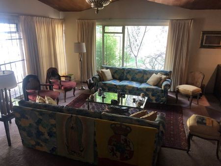Oportunidad única de tener una propiedad con jardines y espacios a mitad de precio. El terreno en si es de 540 m2 reales pero contando el terreno federal se llega a casi 1000 m2!!! Esta propiedad cuenta con tres recámaras, la principal con vestidor y tina, las otras dos cuentan con su propio baño y amplios closets. Al salir de las tres, se llega a una sala de estar o cuarto de TV muy amplio y agradable, al descender un nivel se encuentra la sala con chimenea y en la parte de abajo, un salón de fiestas con bar y acceso al patio que cuenta con un asador. El comedor te lleva al antecomedor llegando a la cocina con una amplia alacena. El cuarto de servicio se divide en dos habitaciones y un baño. Al salir por la parte de atrás, existe un pequeño departamento independiente. Cuenta con tres jardínes muy amplios, garage techado para dos autos y otros 6 autos sin techar. El terreno es único por lo que usted se lleva casi el doble de espacio por el precio normal.