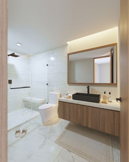 Incluye marina privada, alberca familiar, alberca infinity para adultos, jacuzzis, asadores, lounge bar, spa, gimnasio, business center, fire pit, pet park, kid’s club, área infantil, cancha de pádel, básquet 5, pickleball, volley beach y pool bar.