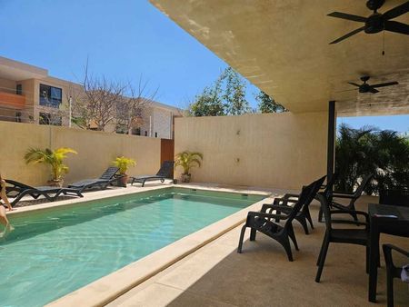 Ventiladores de techos y aires acondicionados en sala, comedor, cocina y recámaras.