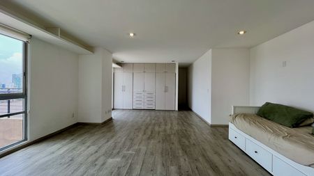 Magnífico departamento tipo loft (espacio totalmente abierto) en piso 13 con terraza privada de 38.68M2 para disfrutar al aire libre y de una vista espectacular a la ciudad. Aprovecha esta gran oportunidad de inversión en tu calidad de vida. Es ideal para solteros/as o parejas, que buscan vivir en un espacio confortable y práctico a la vez. Además, disfrutarás de gran iluminación natural y mucha ventilación. Cuenta con 1 baño, área de lavado integrada, espacio de recámara con closet y estancia totalmente abierta para acondicionar a tu gusto.