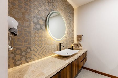 • Piso de porcelanato en color platino, tectonique marca FIRENZE, cosmopolita travertino marca CASTEL