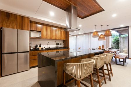• campana eléctrica en isla, ventiladores de techo en todas las áreas