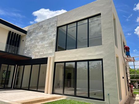 Casa en venta nueva a estrenar en el country club, consta consta de 4 recamaras, y piscina, y aires acondicionados, famili room, cuarto de servicio, barandales de cristal, canceleria negra española, incluye cisterna de 5000 lts, y hidrineumatico, pergola en terraza, domos de cristal, canceleria tanque de gas estacionario, incluye sistema de riego, pasto y plantas decorativas