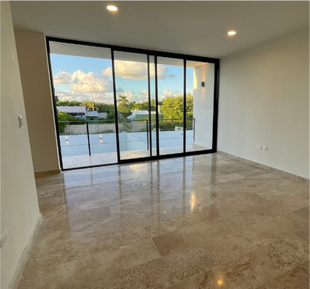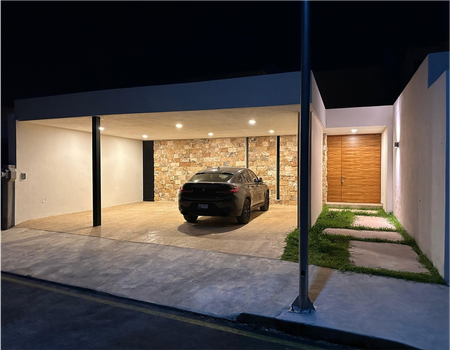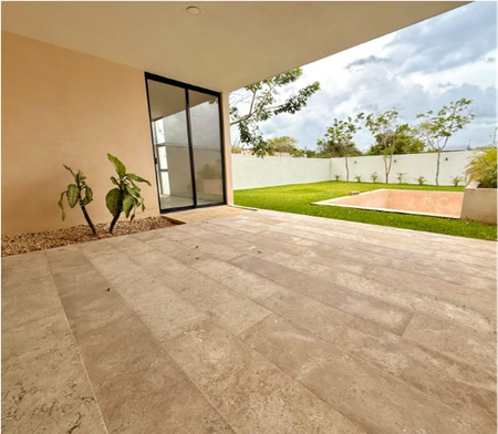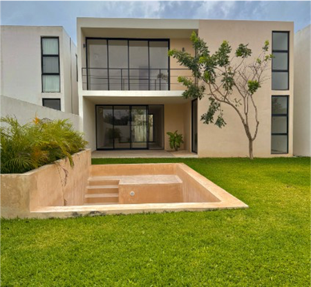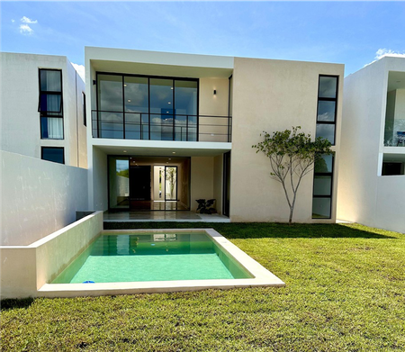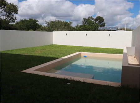 Casa de dos plantas ubicada en Bellavista, Dzitya; con cuatro recámaras, terraza techada, jardín, alberca, cuarto de servicio con baño completo y terreno de 11 x 40m.