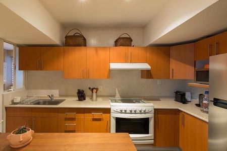 -Departamento de 114 m2, actualmente una recámara con balcón ( original 2 recamaras ), 3 baños, estancia y comedor, cocina integral muy amplia, área de lavado y cuarto de servicio independiente, 1 cajón de estacionamiento.