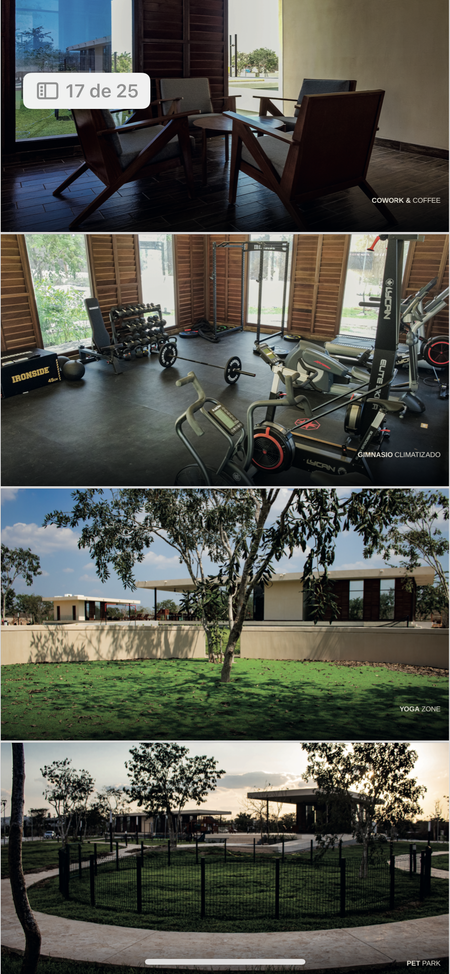 Cuenta con: caseta de vigilancia, pórtico de acceso, canal de nado y alberca infantil, pabellón social, pabellón cultural y área de juegos infantiles, cowork & coffee, gimnasio climatizado, yoga zone, pet park, vegetación y luminarias en toda el área de amenidades, terrenos listos para escriturar.