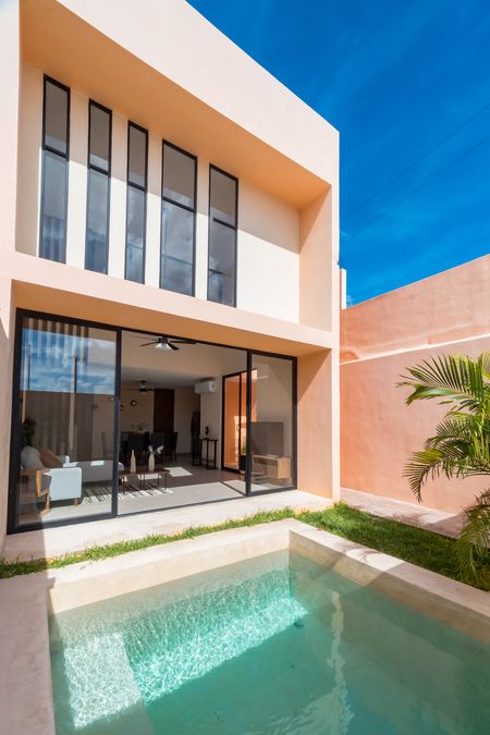 • Acabados premium: muros de chukum, carpintería de tzalam, cancelería negro mate