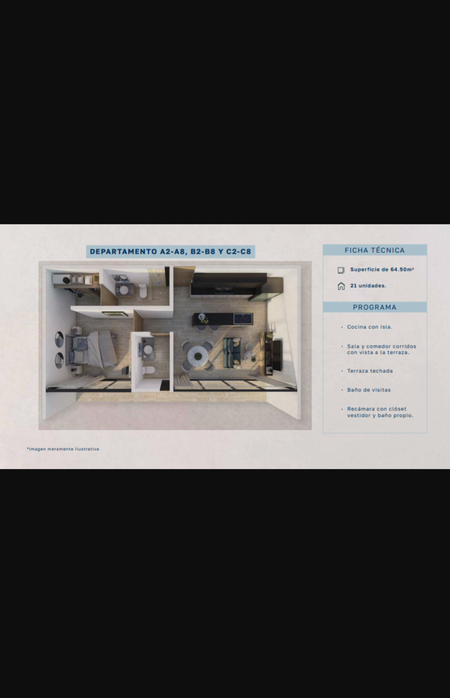 Depto. A2-A8, B2-B8, C2-C8: (64.50 m)