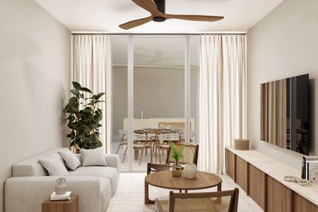 🛋️🪑Sala - Comedor - Cocineta Integral (Refrigerador, mesa y 4 sillas, mesa de centro, parrilla a gas y Armario).